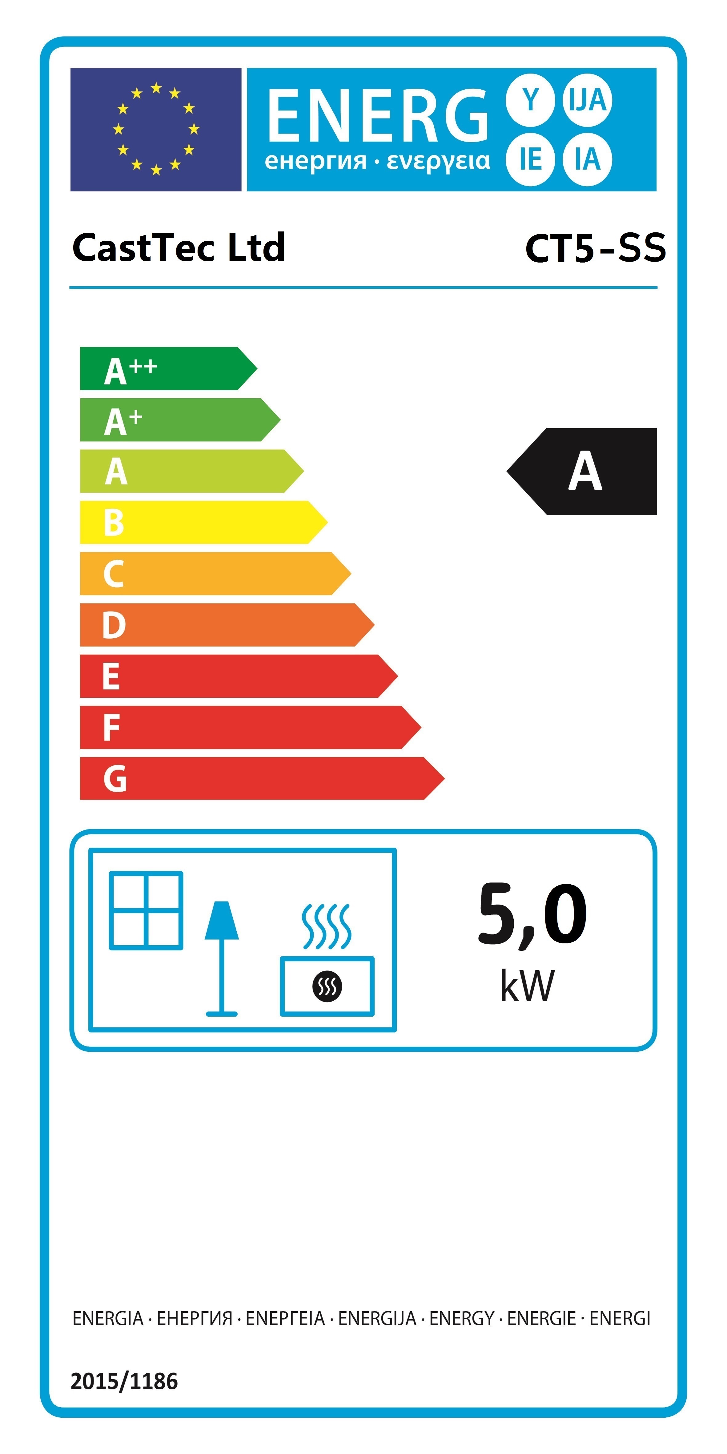Designed for wood burning, the CT5 soapstone stove has a 5kW output, top or rear flue outlet options, efficiency levels approaching 80% and a log store attached.